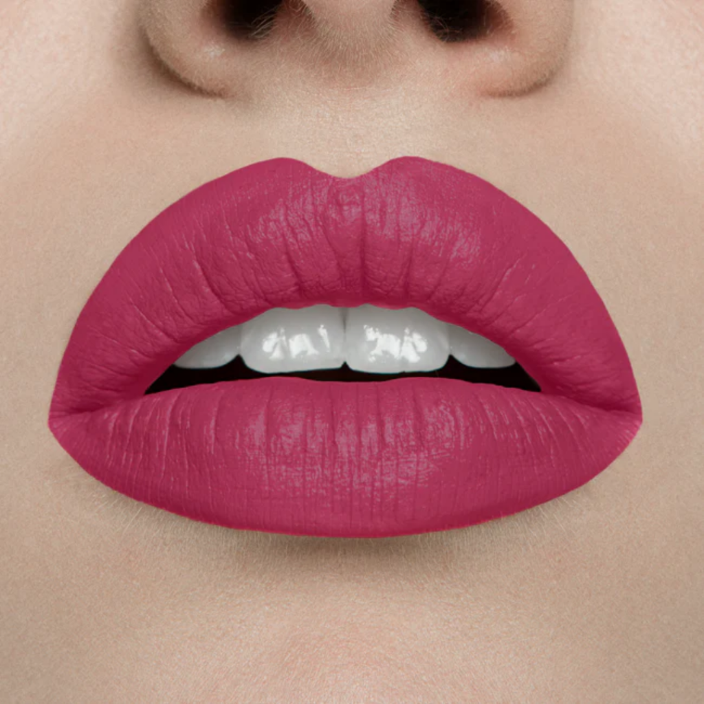 Matt, sügavpunane fuksia alatooniga kreemja tekstuuriga huulepulk. 85% looduslik.